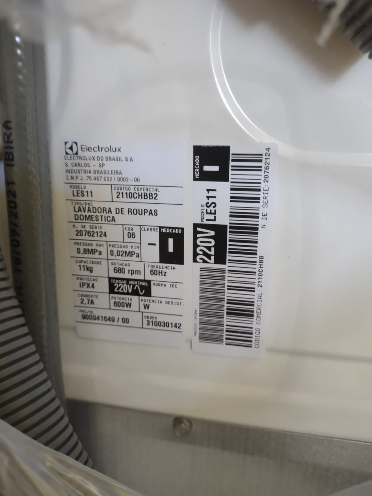 LOTE COM 01 LAVADORA DE ROUPAS ELECTROLUX LES11 220V