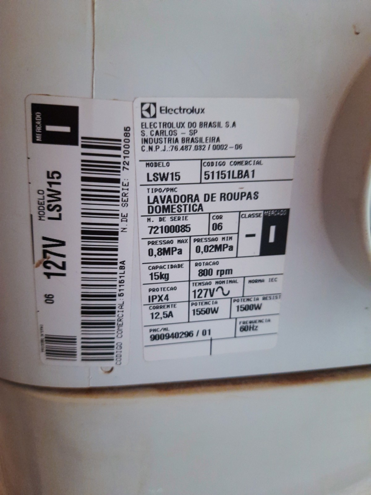 LOTE COM 01 LAVADORA DE ROUPAS ELECTROLUX LSW15 127V